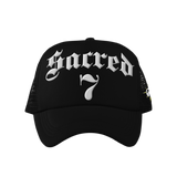 Sacred 7 Embroidered Trucker - Black & White